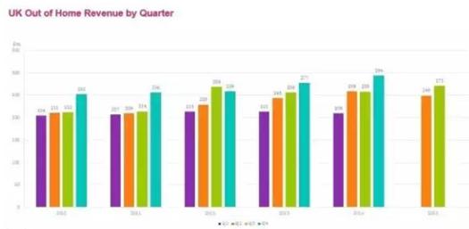 2010-2015年各季度英國戶外廣告市場營收狀況
