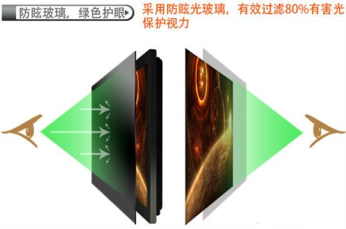 鋼化玻璃表面添加納米涂層,具有極高的透光率,保證了與液晶集成時畫面清晰度。還具有防眩光處理技術,有效過濾80%有害光,保護使用者視力。