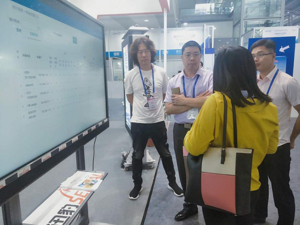 (圖為迅豹工作人員為參展商介紹產(chǎn)品優(yōu)勢和具體功能)