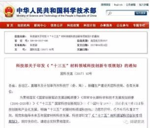 科技部關于印發《“十三五”材料領域科技創新專項規劃》的通知