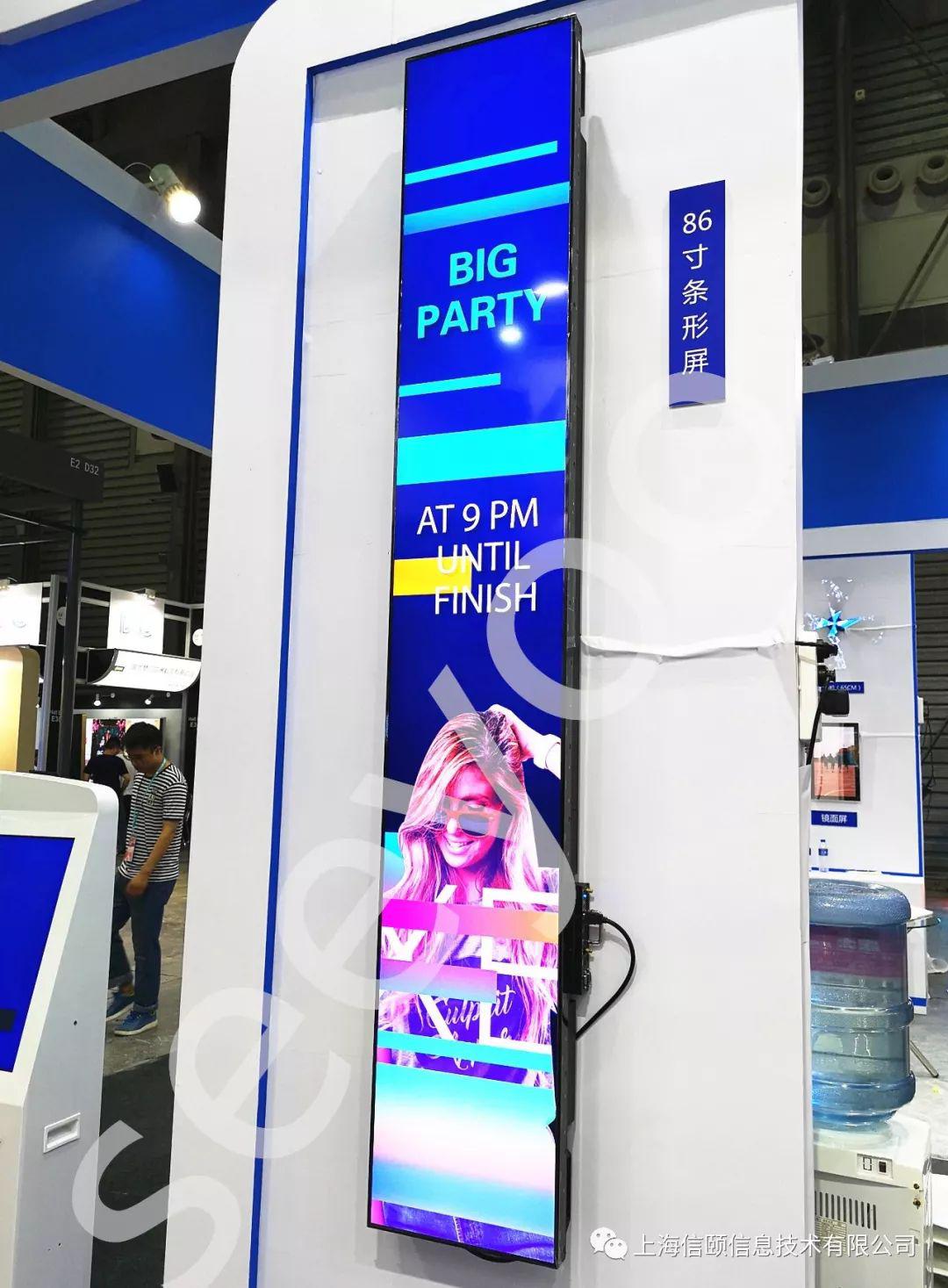 此次展覽會,信頤展出了廣告傳媒、零售、教育和智慧城市等行業方案,展品包括:32寸電子水牌,55寸電子試衣鏡,86寸LG原裝條形屏,27\49寸透明柜,3D風扇廣告機,43寸電子借閱機,物聯網電梯安全保障系統,超聲波定向傳音廣告機,AI語音交互智能終端,22寸電子班牌,鏡面廣告機等。種類之多,技術之領先,為信頤近年來展會之少見,也彰顯出信頤在商用顯示行業保持市場與技術前瞻性的精神!