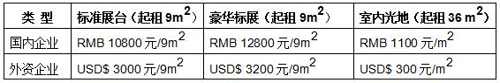 1)展位價格(申請截止日- 2020年4月1日 )注:雙面開口展位加收20%,18平米免收開口費!)