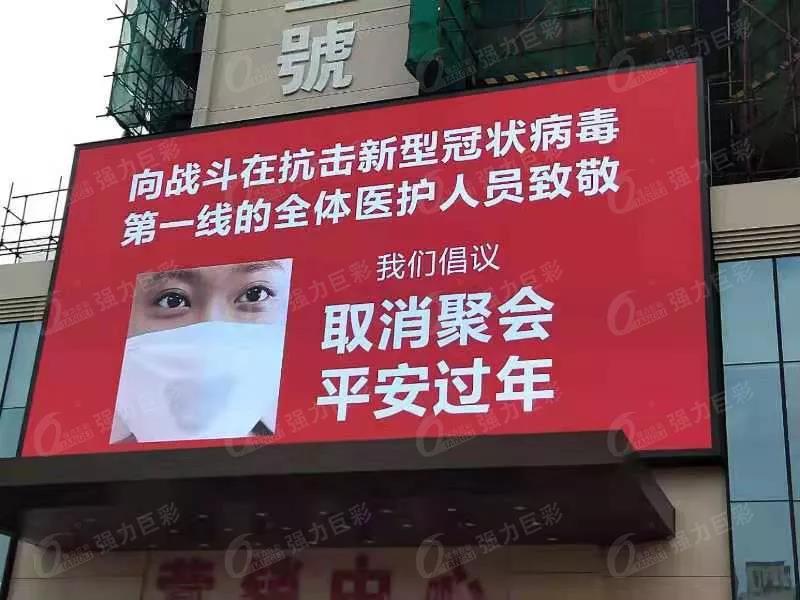 憑借現貨優勢與本地化服務,憑借不限尺寸按需搭配的單元板拼裝模式,強力巨彩LED顯示屏在防“疫”戰中大放異彩,在公益宣傳、監測指揮等運用場景發揮重要作用,在醫院、在政府公共管理等部門、在社區、在繁華街道,都能遇見強力巨彩LED大顯示的美麗身影。