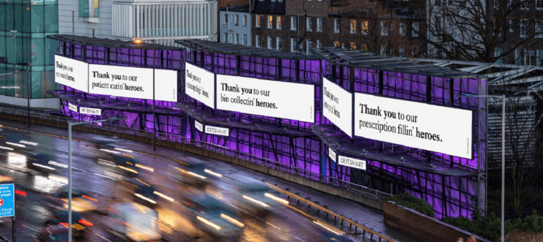這個(gè)創(chuàng)意旨在鼓勵(lì)那些犧牲個(gè)人時(shí)間和冒著巨大風(fēng)險(xiǎn)的一線工作者。合作方包含Boomerang Media, Clear Channel UK, DOOH.com, Hi! Street Digital Media &, Kinetic UK, Ocean Outdoor 和 Open Media。以這樣的方式向整個(gè)國(guó)家說感謝令人感動(dòng)。