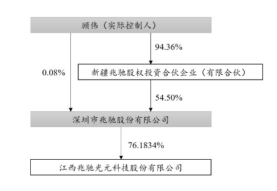 截至本預案出具日,兆馳股份持有兆馳光元76.1834%的股份,股權結構圖如下: