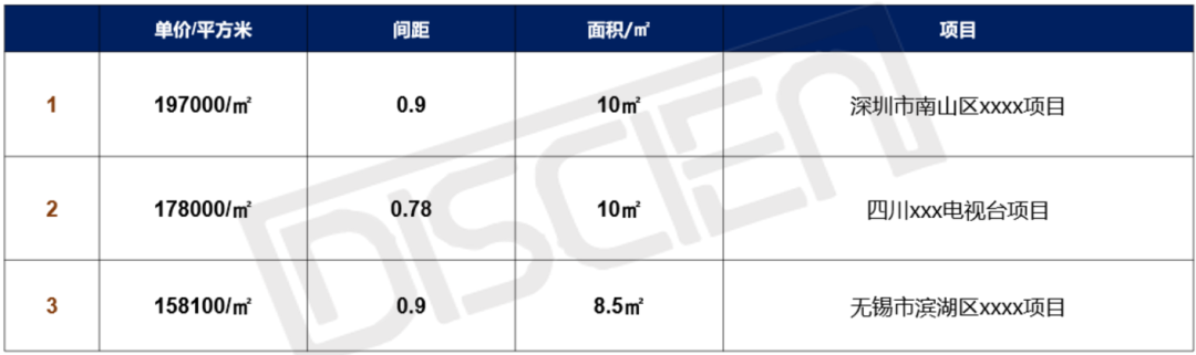 2022年LED小間距&微間距公開(kāi)中標(biāo)項(xiàng)目挖掘-采購(gòu)單價(jià)/㎡TOP3